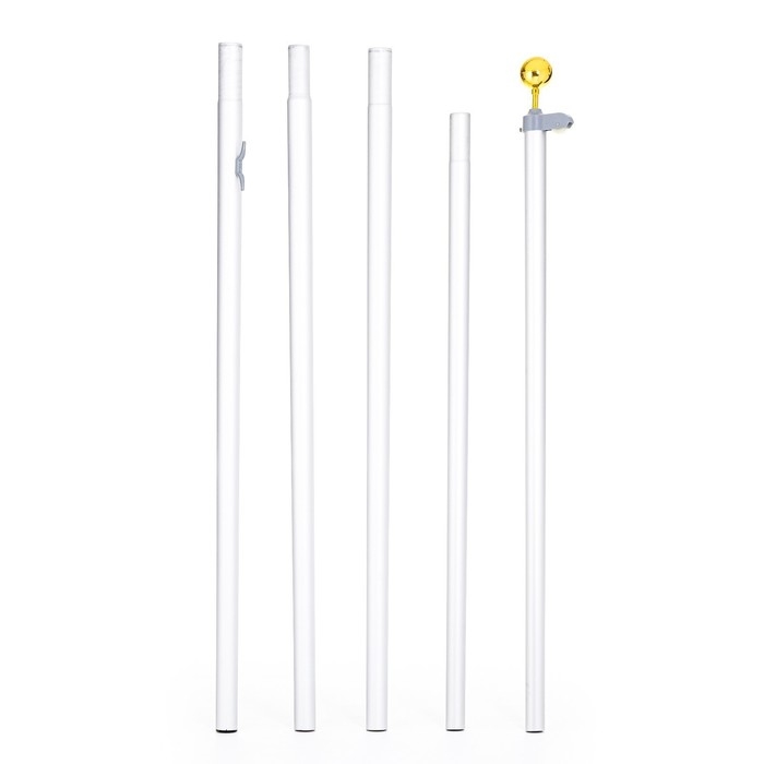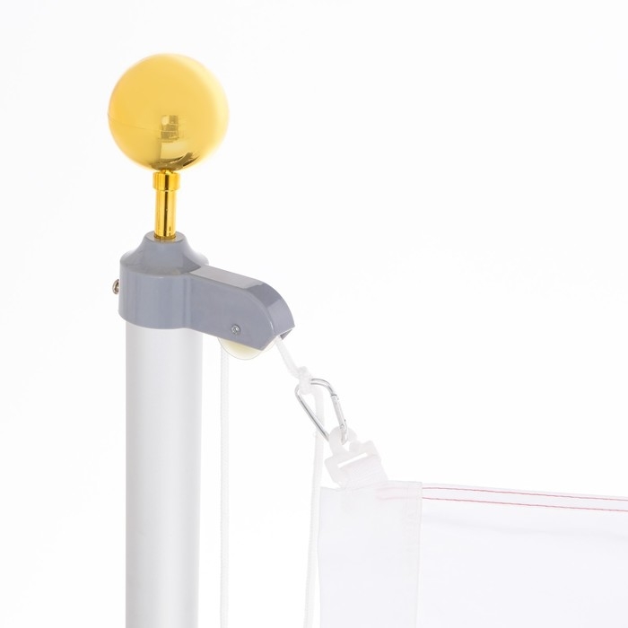 При подъеме/опускании полотно флага крепится на шнур. Он зажимается при помощи специального фиксатора внутри мачты флага. Верхняя часть флагштока декорирована навершием.