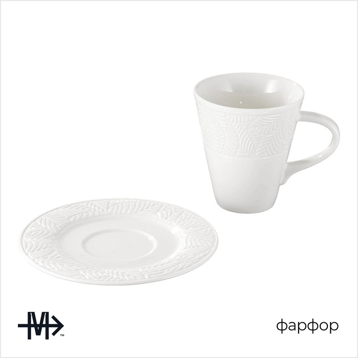 Чайная пара фарфоровая Magistro «Бланш», 2 предмета: чашка 300 мл, блюдце, цвет белый