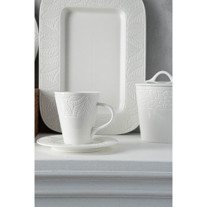 Чайная пара фарфоровая Magistro Сrotone, 2 предмета: чашка 220 мл, блюдце d=15 см, цвет белый