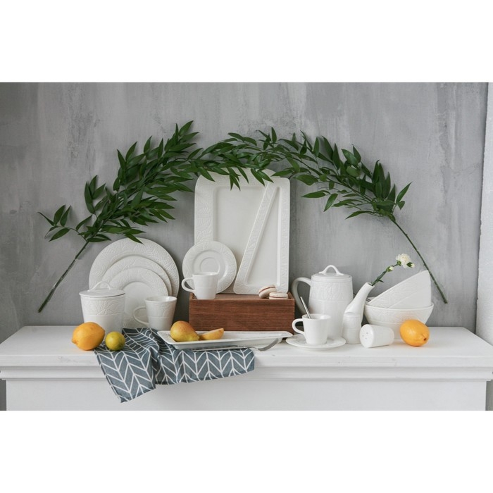Посуда Magistro серии «Лист» – это безупречно изящная коллекция посуды из белоснежного фарфора, достойная украсить даже королевский стол. Традиционная форма изделий остается всегда актуальной и выглядит благородно. Рельефный узор в виде листьев выглядит особенно утончённо и придает посуде индивидуальности. Посуда Magistro «Паутина» идеально впишется в любой современный интерьер!
