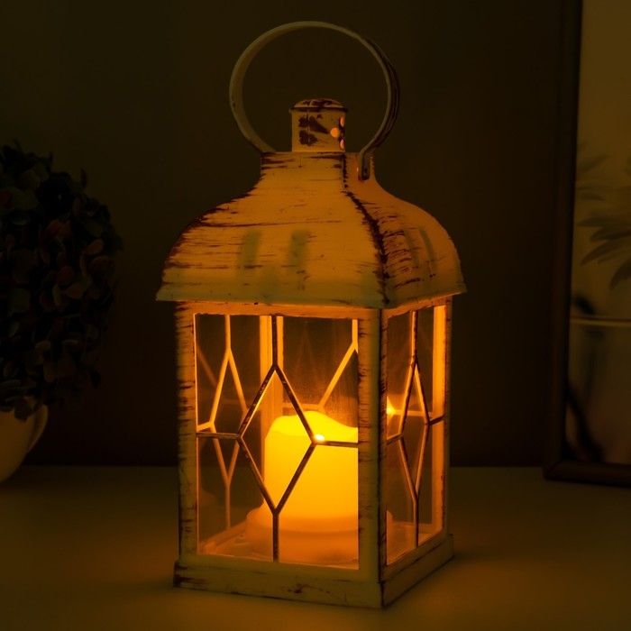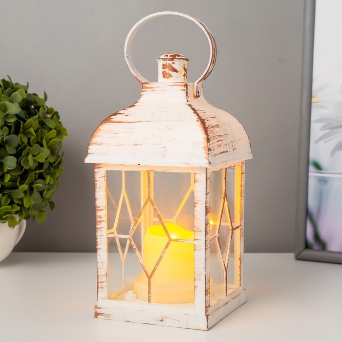 Ночник "Фонарь 2" LED от батареек 3хААА белый с золотой патиной 11х11х21,5 см