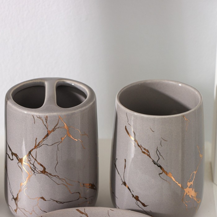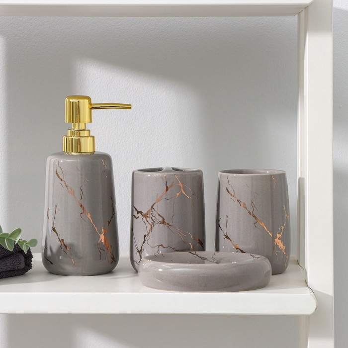 Набор аксессуаров для ванной комнаты SAVANNA «Гроза», 4 предмета (мыльница, дозатор для мыла, 2 стакана), цвет серый