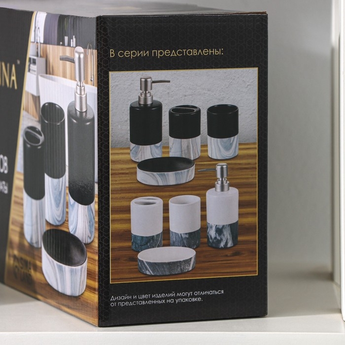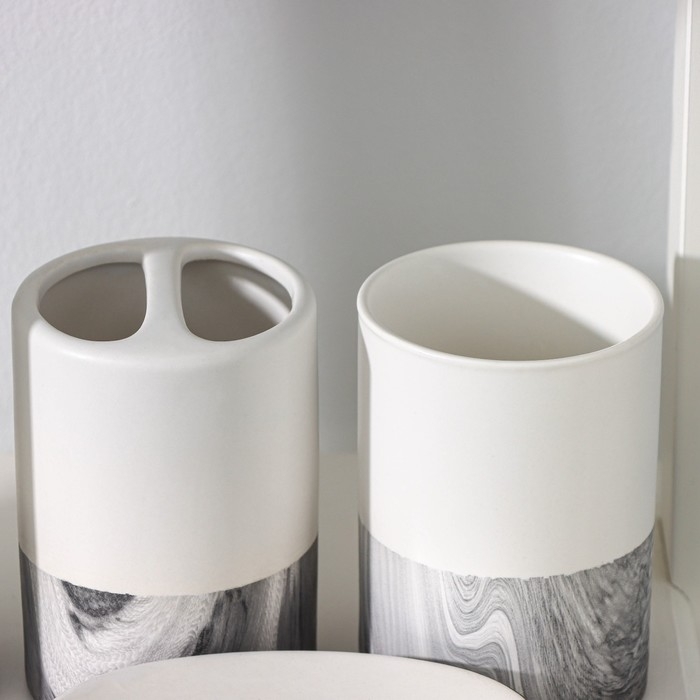 Набор аксессуаров для ванной комнаты «Мрамор», 4 предмета (дозатор 190 мл, мыльница, 2 стакана 290 мл), цвет белый