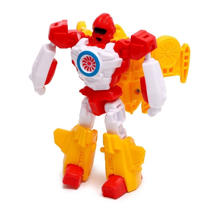 - Размер жёлтого робота / в виде истребителя: 8,5 × 7 × 12 см / 10 × 13 × 7 см.