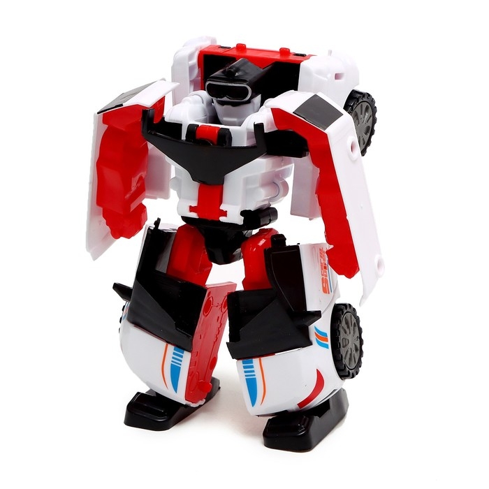 - Размер белого робота / в виде машинки: 9,5 × 6,5 × 12 см / 11 × 6 × 7 см.