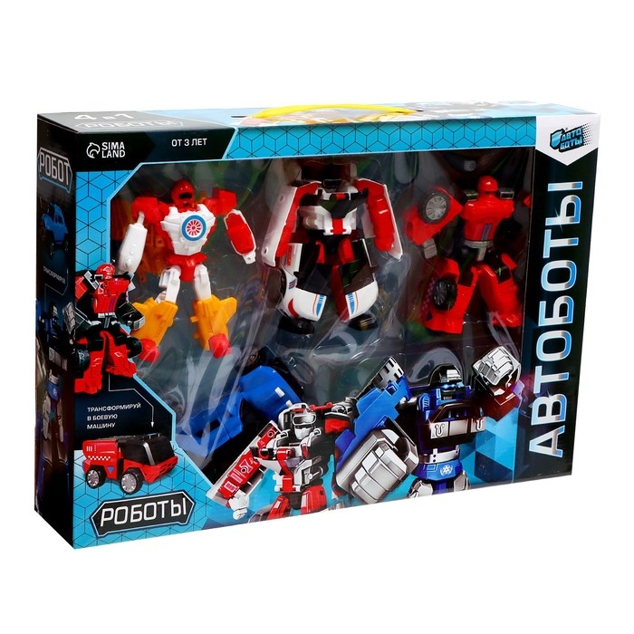 «Автоботы» — роботы с суперсилой, они способны трансформироваться в транспорт. Этот набор включает в себя 4 робота, которые превращаются в истребитель и машинки 3 цветов.