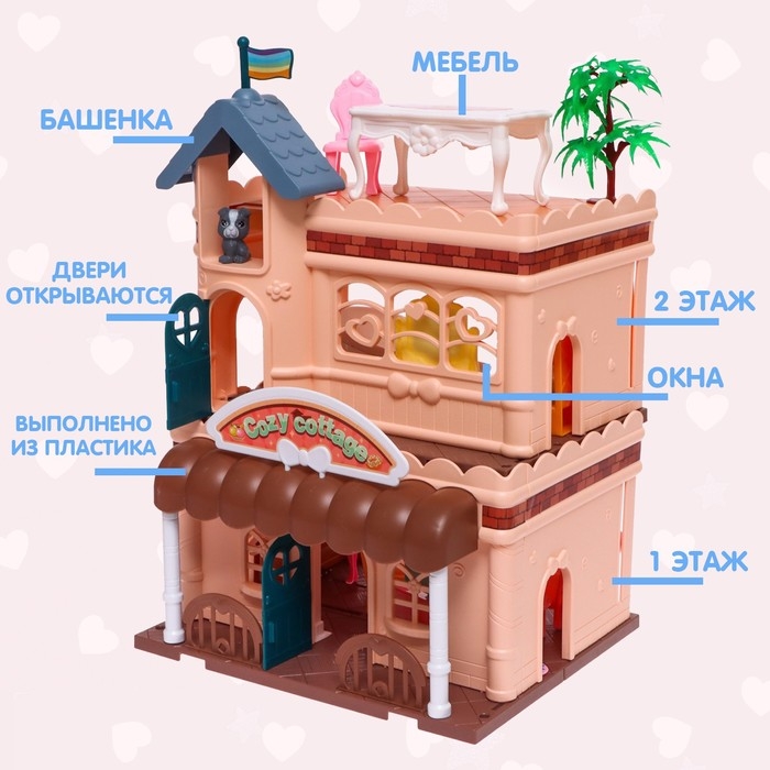 Что может быть лучше кукольного домика для маленькой принцессы? Только набор с домом, который можно превратить в 2-этажный коттедж, а также с мебелью, куклой и питомцами! С ним малышка обустроит уютный уголок и придумает множество увлекательных сюжетно-ролевых игр. Набор станет отличным подарком на любой праздник!