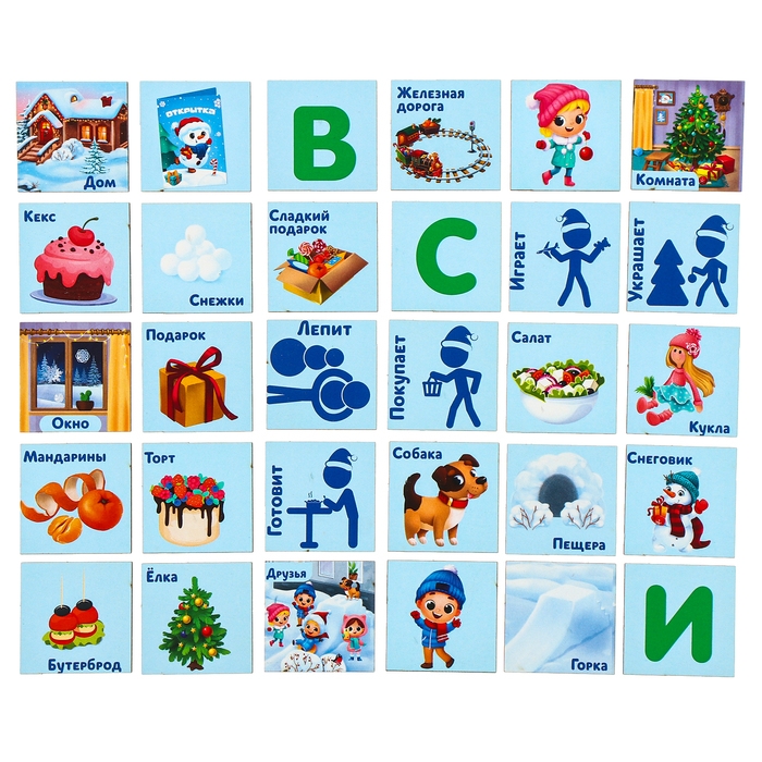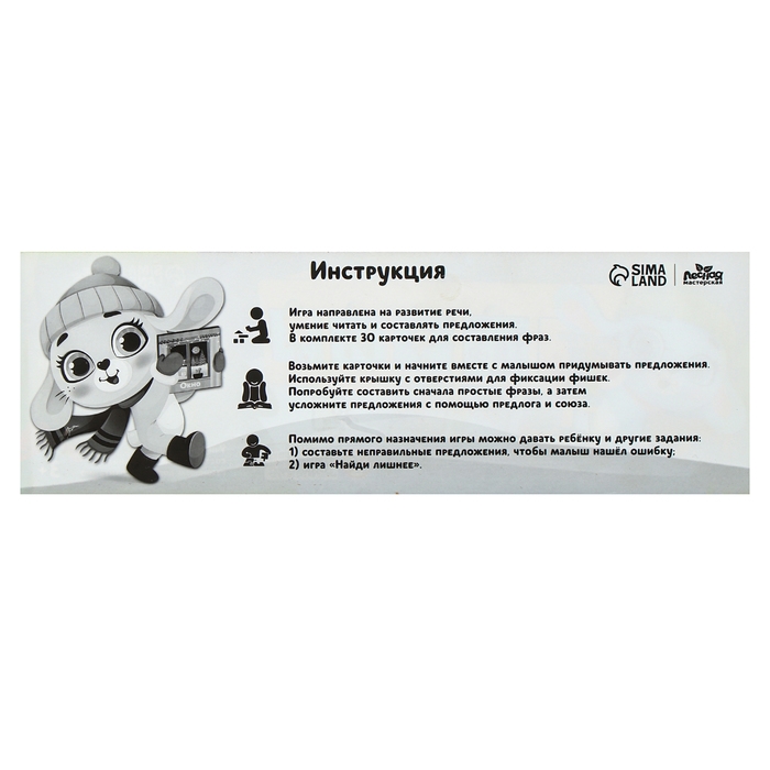 - В набор входит 30 фигурок с картинками, действиями и предлогами.