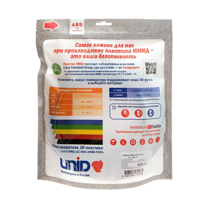 Пластик UNID ABS-12, для 3Д ручки, 12 цветов в наборе, по 10 метров