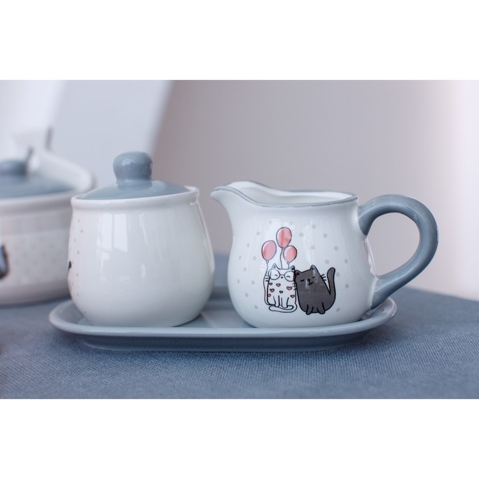 Набор сервировочный Доляна «Уютные коты», 2 предмета: молочник 270 мл, сахарница 310 мл