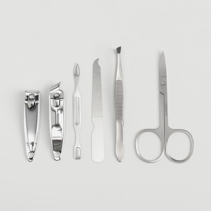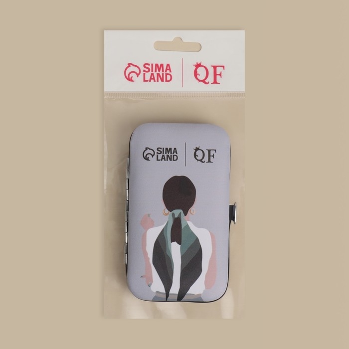 Набор маникюрный «С ЗАБОТОЙ», 6 предметов, в футляре, в PVC - коробке, цвет серый