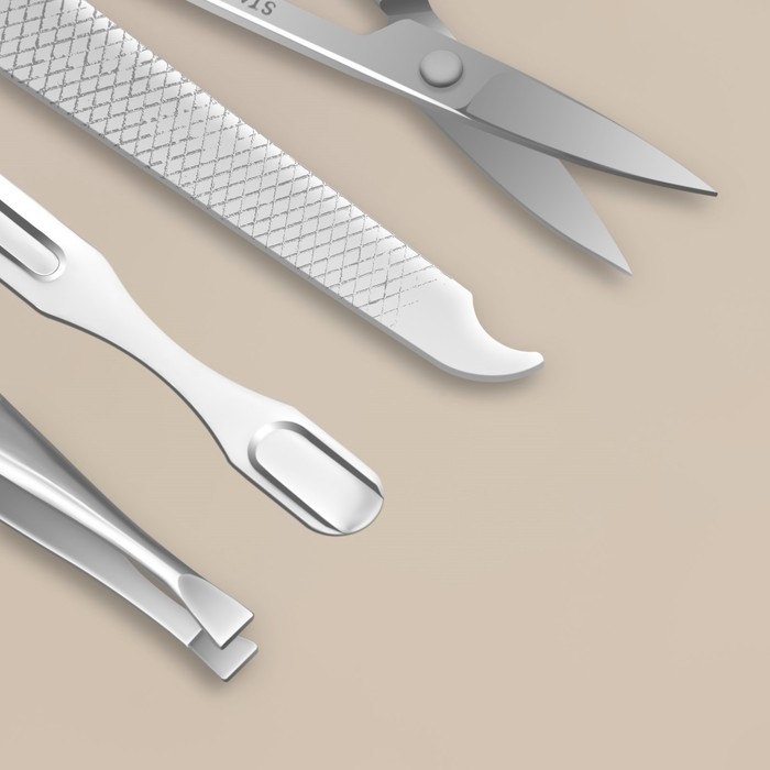 Набор маникюрный, 7 предметов, в футляре, цвет молочный