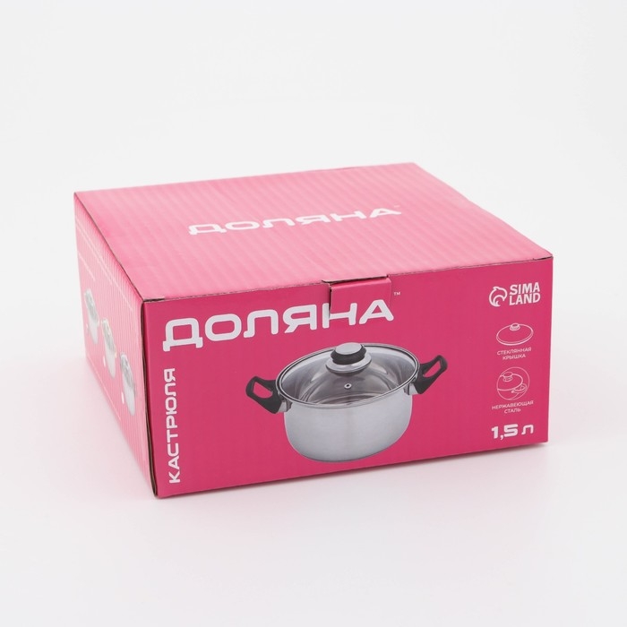 Кастрюля с крышкой из нержавеющей стали Доляна «Классика», 1,5 л, d=17,5 см, капульное дно