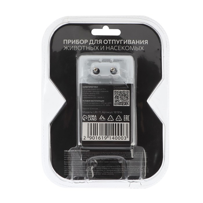 Отпугиватель крыс и насекомых Luazon LRI-11, ультразвуковой, 70 м2, 220 В, белый