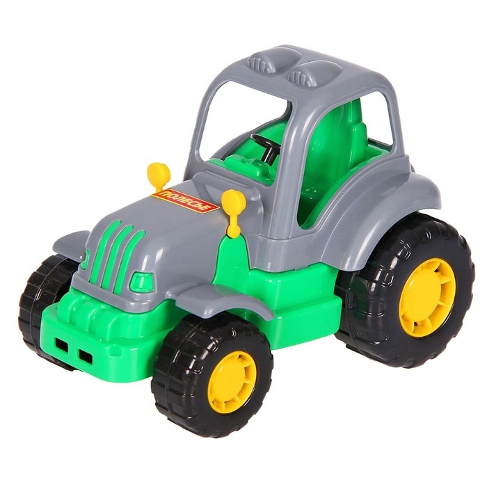 Трактор — это незаменимый вид техники на любой ферме. Благодаря большим пластиковым колёсам игрушка подойдёт для развлечений дома и на улице.