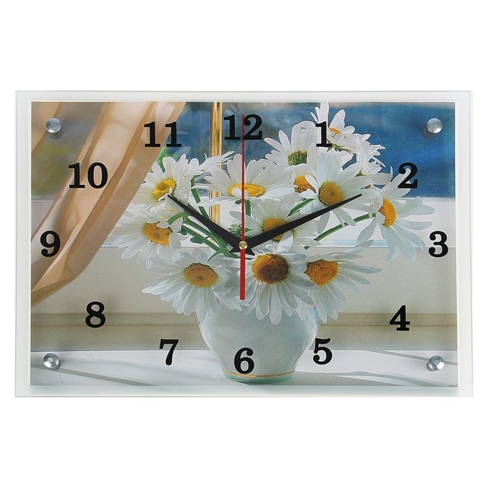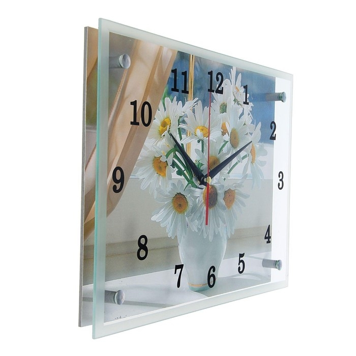 Часы-картина настенные, интерьерные "Ромашки", бесшумные, 25 х 35 см