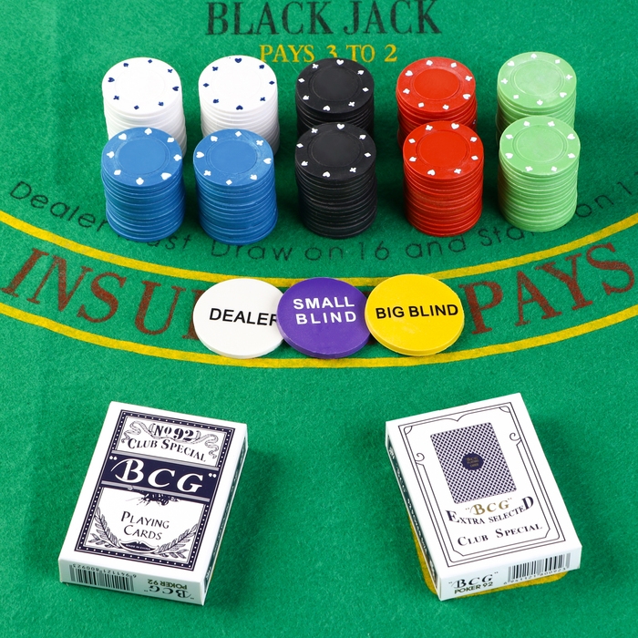 Покер, набор для игры (карты 2 колоды, фишки 200 шт.), без номинала, 60 х 90 см