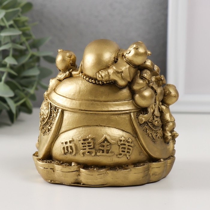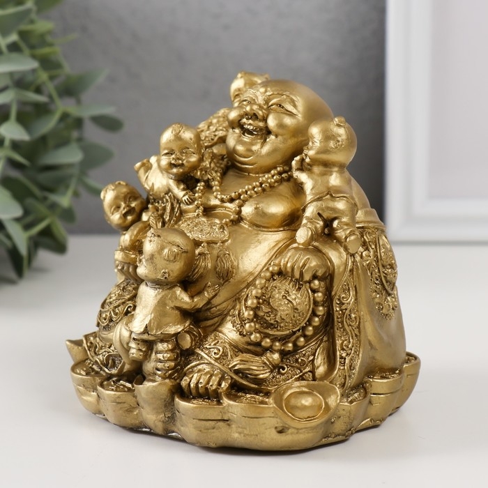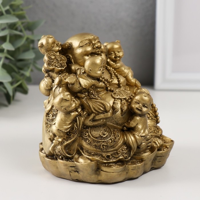 Нэцкэ полистоун под бронзу "Хотей с детьми" 10,8х10х9,5 см