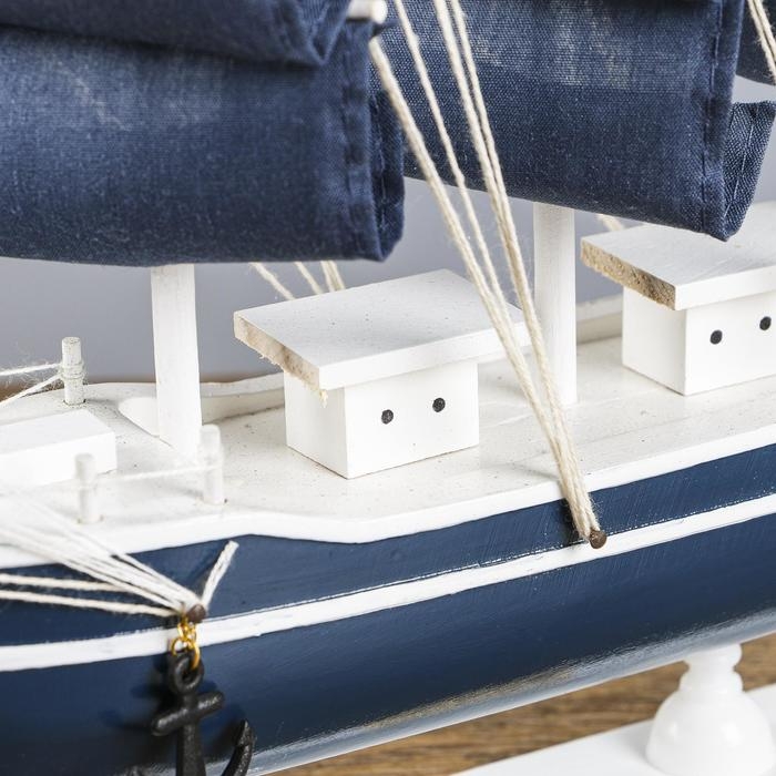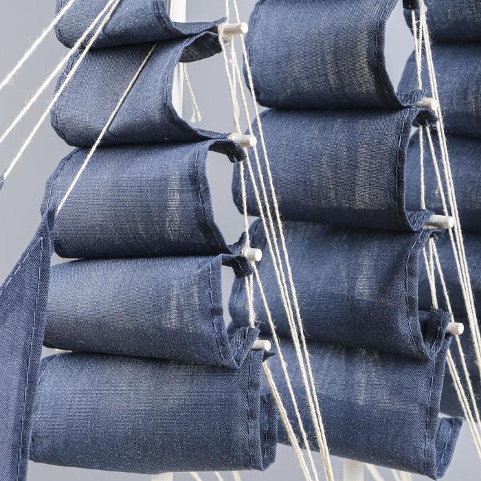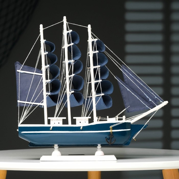 Корабль сувенирный средний «Калева», борта синие с белой полосой, паруса синие, 30х7х32 см