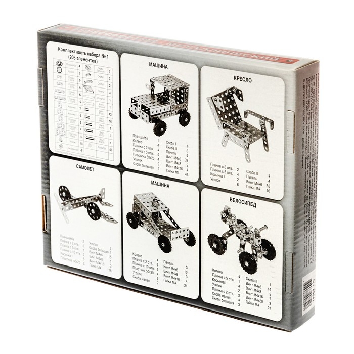 Конструктор металлический №1 для уроков труда, 206 деталей