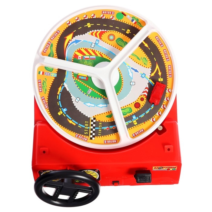Установите на игровое поле машинку, поверните ключ зажигания, выберите одну из 3 скоростей на коробке переключения передач и начинайте движение. После старта гоночная трасса начнёт крутиться по часовой стрелке, а вам необходимо её придерживаться. Питание игры осуществляется с помощью 2 или 3 элементов типа C (R26.2).