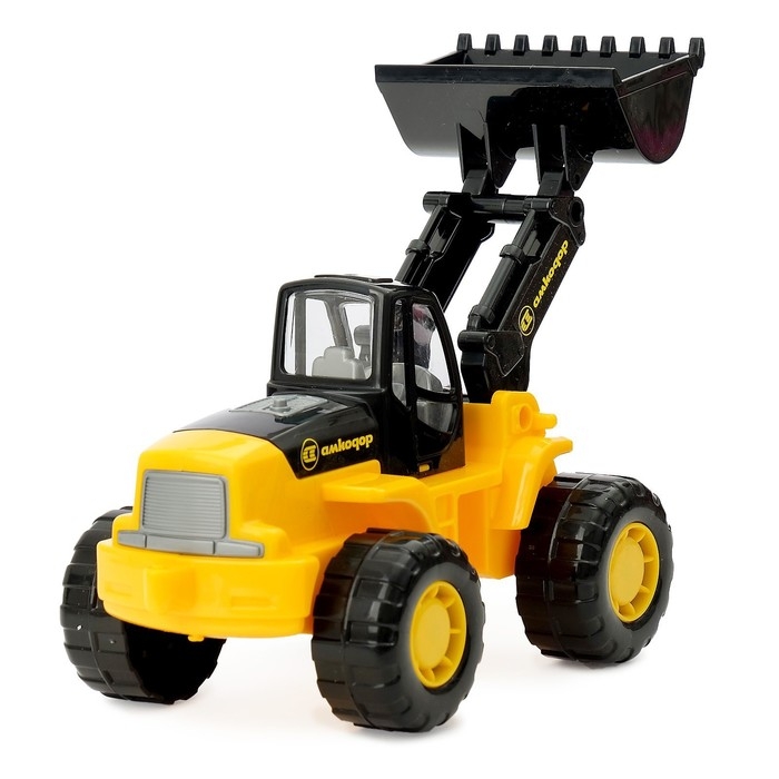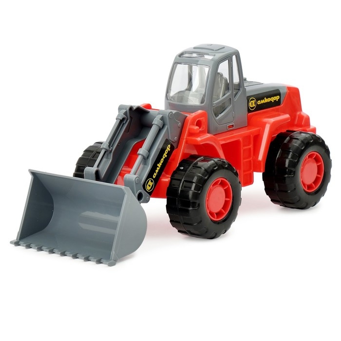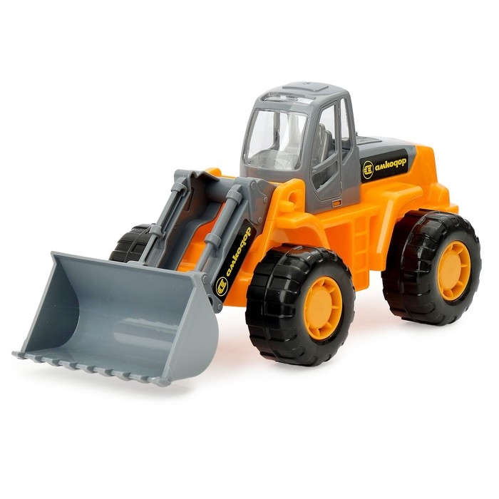 Трактор-погрузчик — незаменимая техника на любой ферме и стройке. Она оснащена широким ковшом для копания песка и мелких камушков. Такая игрушка подойдёт для развлечений дома и на улице.