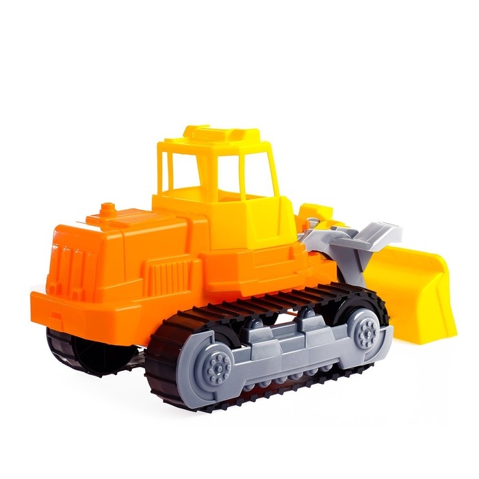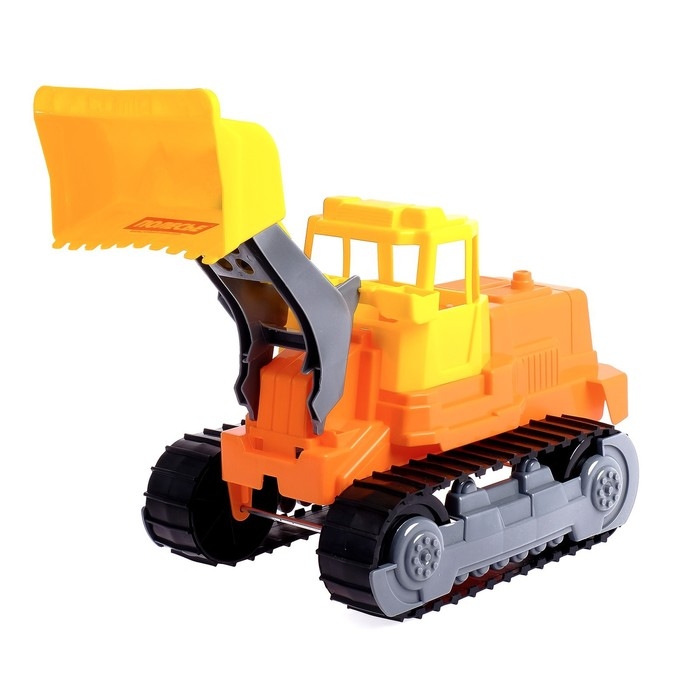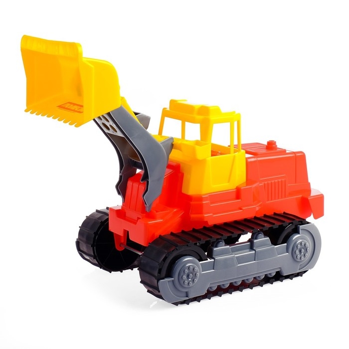 Трактор-погрузчик — незаменимая техника на любой ферме и стройке. Она оснащена широким ковшом для копания песка и мелких камушков. Такая игрушка подойдёт для развлечений дома и на улице.