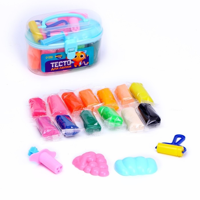Тесто для лепки, 13 цветов, 200 г, 2 формочки, каток, шприц, цвета МИКС