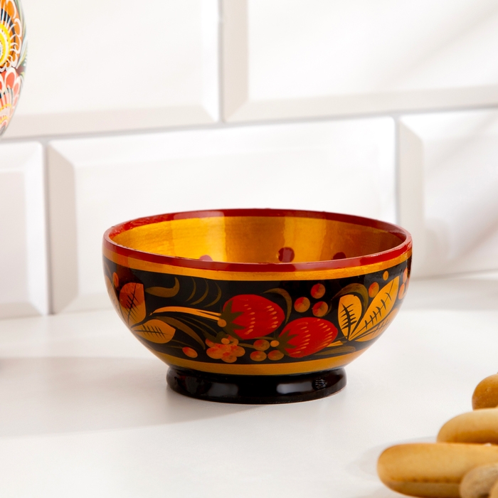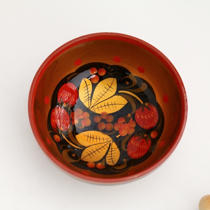 Традиционные элементы Хохломы — ягоды рябины и земляники, цветы и листья, птицы, рыбы и звери.