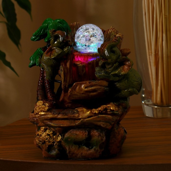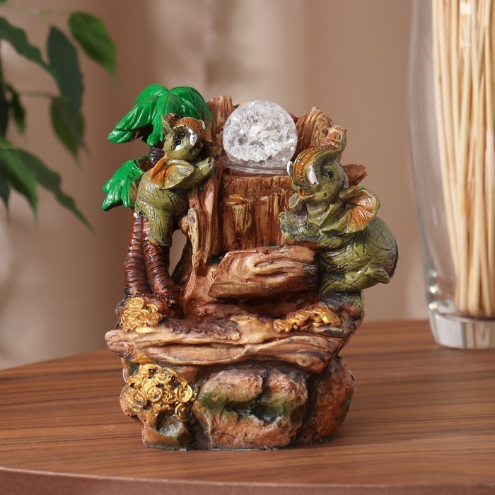 Фонтан "Слоны с монетками, пальма" 20х13 см (с подсветкой)