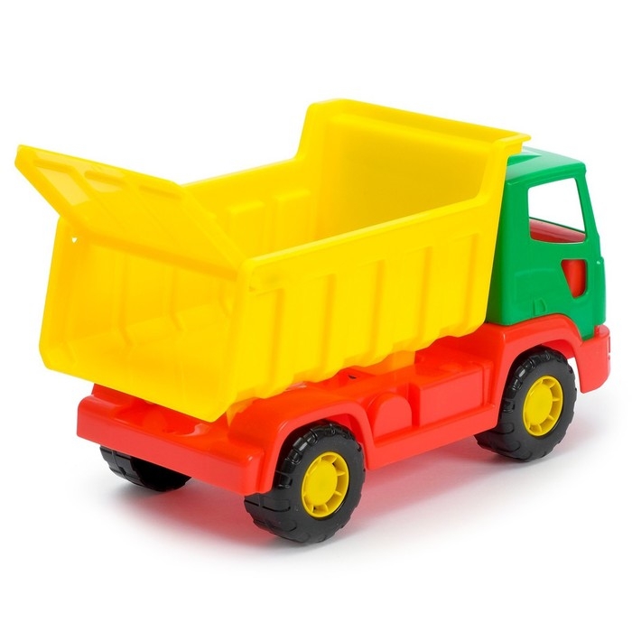 Самосвал ТМ «Полесье» порадует маленьких любителей спецтехники. Он оснащён вместительным кузовом, в который можно засыпать песок или камушки. Пластиковые колёса транспорта не поцарапают паркет или ламинат в квартире.
