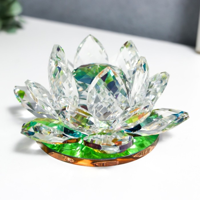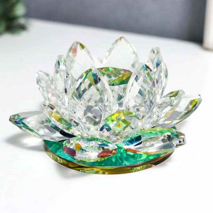 Сувенир стекло "Лотос кристалл трехъярусный голография" d=11 см станет замечательным подарком представительнице прекрасного пола, такой же утонченной и изящной, как этот необычный цветок.