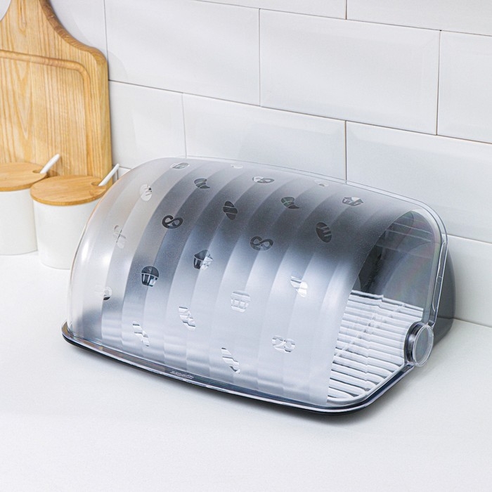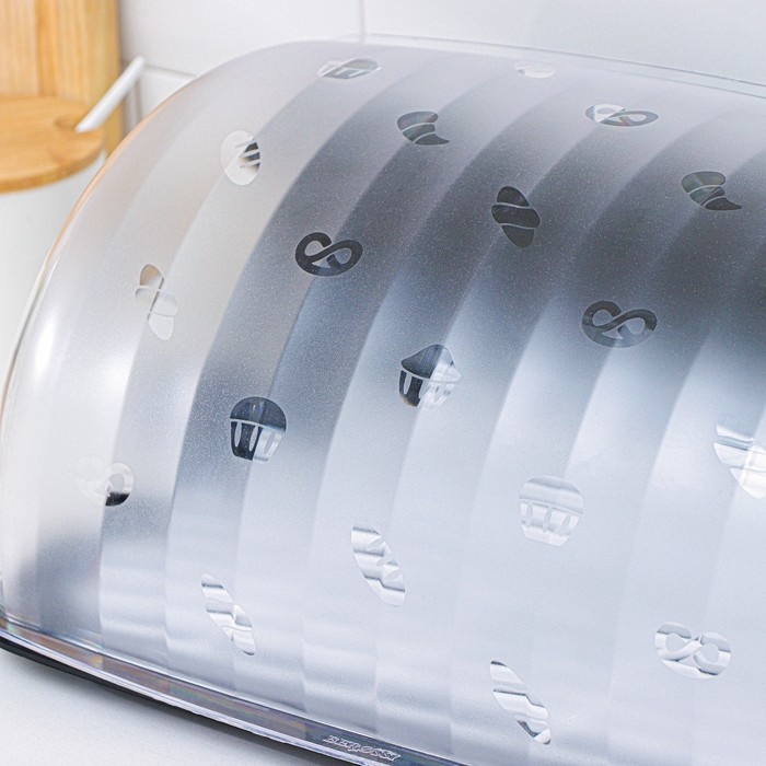 Большая, необычайно удобная хлебница «Рондо», 34×26×15,5 см, цвет чёрный станет настоящим украшением вашего стола! Оригинальная расцветка приятно впишется в любой интерьер. Откидная матовая крышка украшена миниатюрными глянцевыми рисунками.