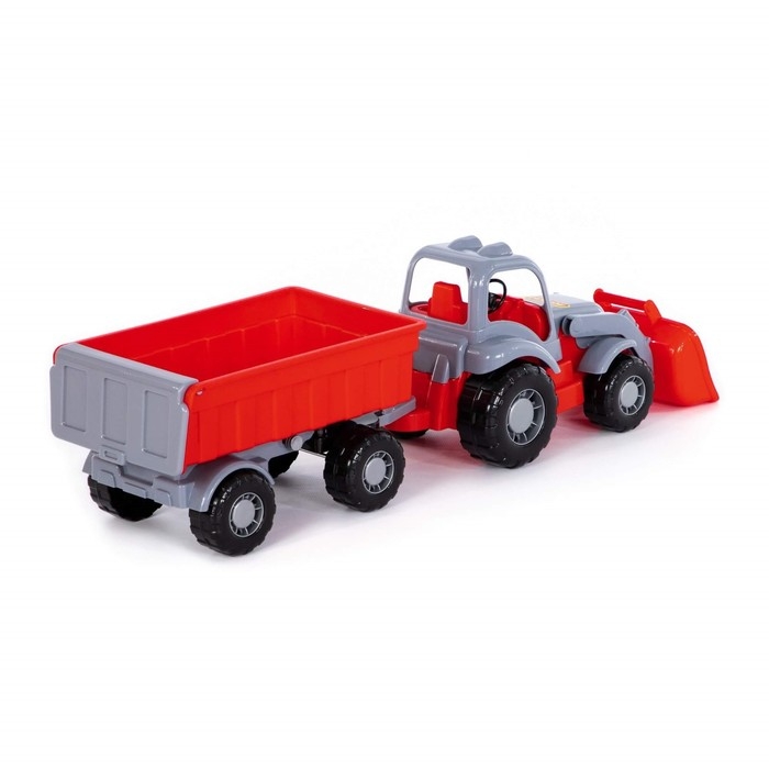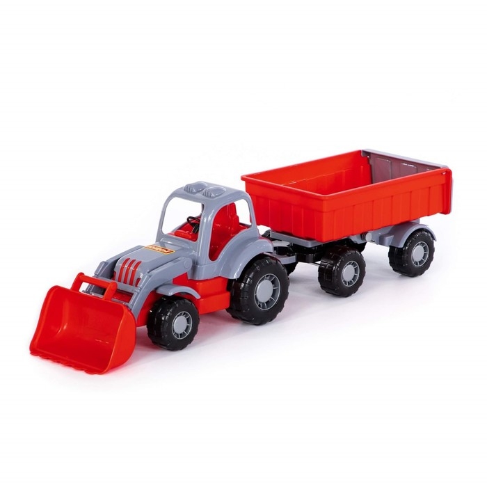 Трактор-погрузчик ТМ «Полесье» понравится всем юным строителям. Он оснащён широким ковшом с удобной ручкой для копания песка и мелких камушков. К фаркопу крепится вместительный прицеп. Такая игрушка подойдёт для развлечений дома и на улице.