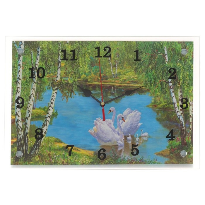Часы-картина настенные, интерьерные "Лебеди", бесшумные, 25 х 35 см
