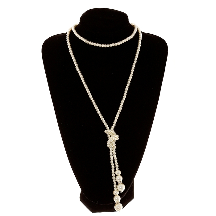 Чокер «Новый стиль» жемчужины с завязкой, цвет черно-белый 35 см