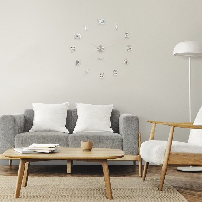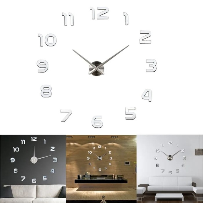 Часы настенные интерьерные большие, 3d "Акстелл",бесшумные, наклейка, d-70 см