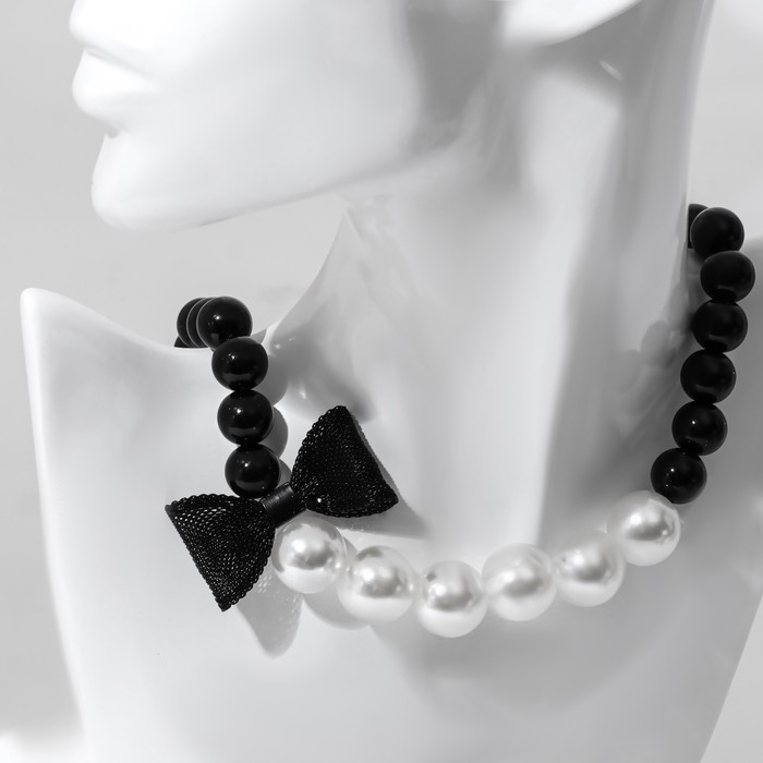Чокер «Новый стиль» жемчужины с завязкой, цвет черно-белый 35 см