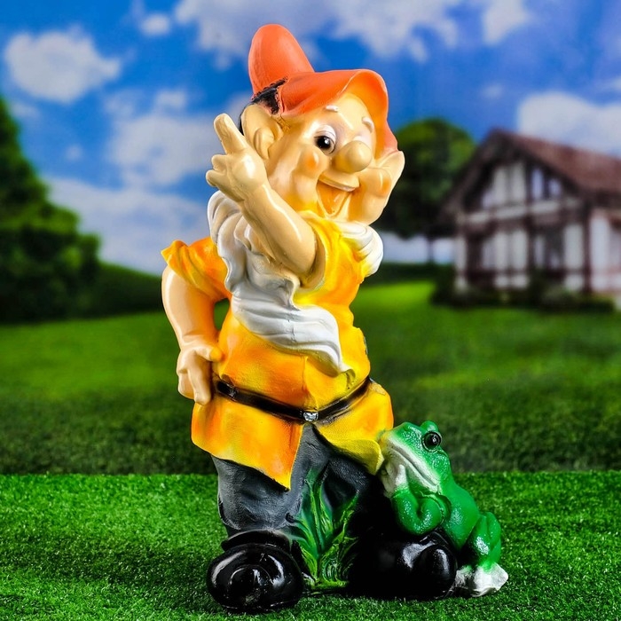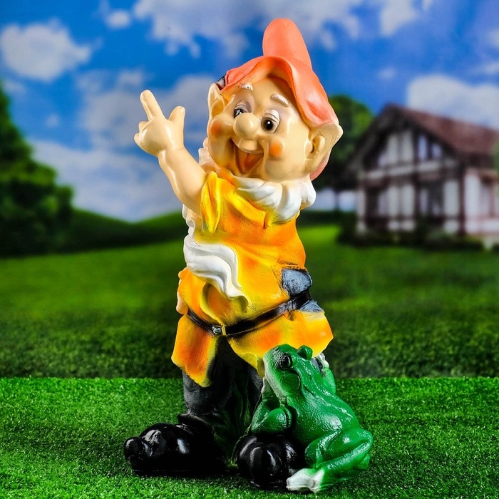 Садовая фигура "Гном с лягушкой" 20х27х50 см