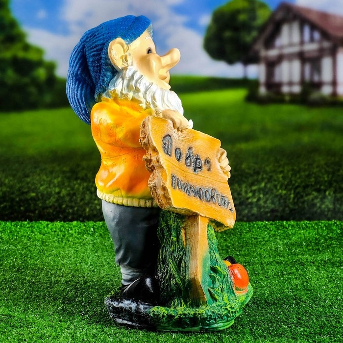 Садовая фигура "Гном с табличкой" 28х24х45см