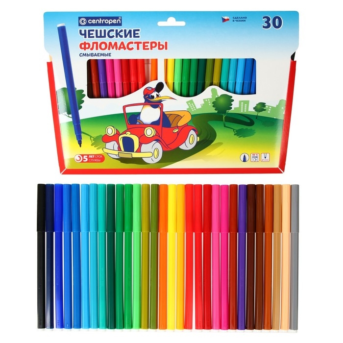 Фломастеры 30 цветов 1.8 мм Centropen 7790 "Пингвины", пластиковый конверт, линия 1.0 мм