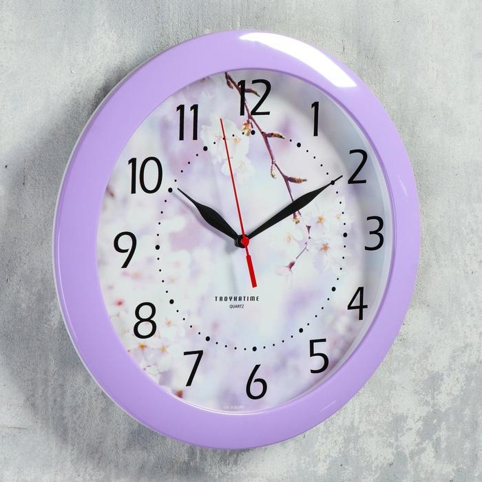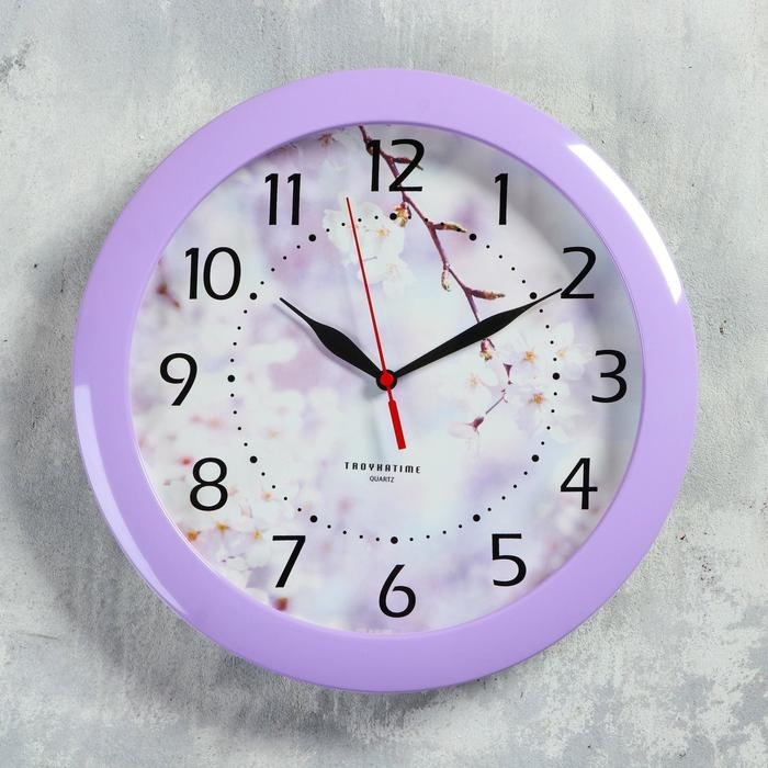 Часы настенные, серия: Цветы, "Цветущее дерево", плавный ход, d-29 см, сиреневый обод
