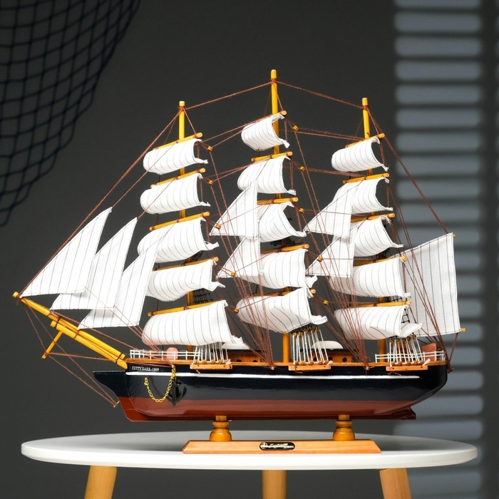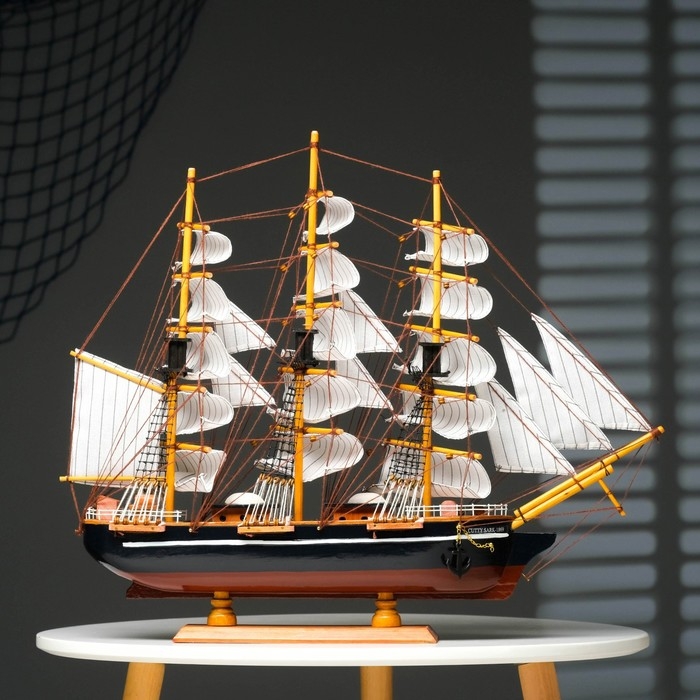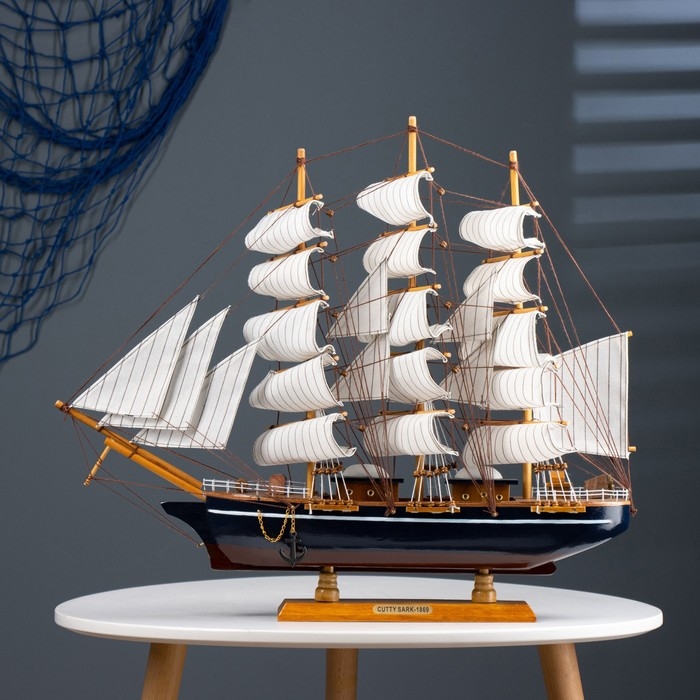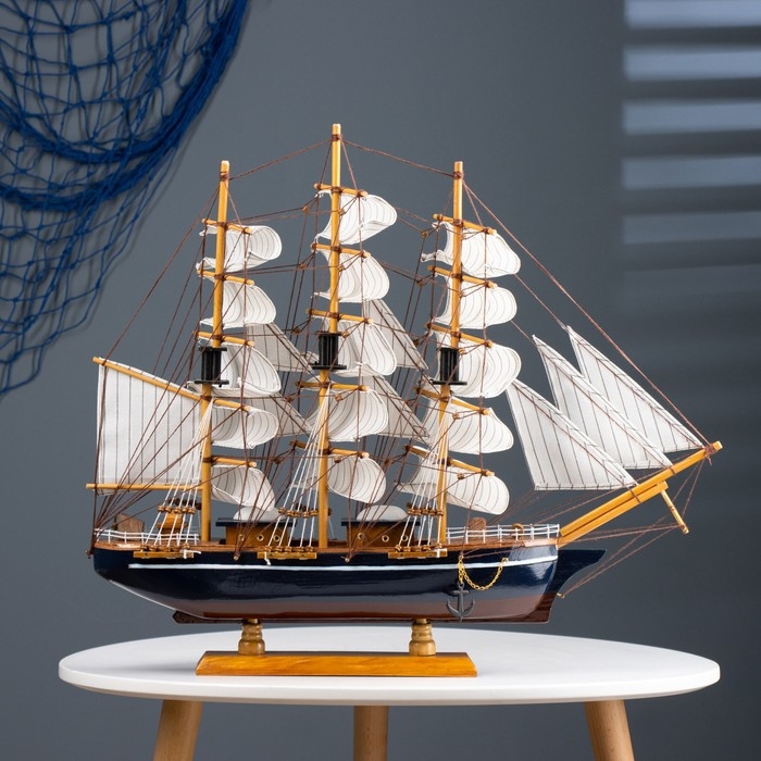 Корабль сувенирный большой «Трёхмачтовый», борта светлое дерево, паруса белые, 59 х 10 х 49 см