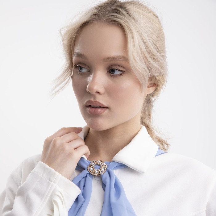 Зажим для платка «Звенья» с жемчужиной, цвет белый в золоте