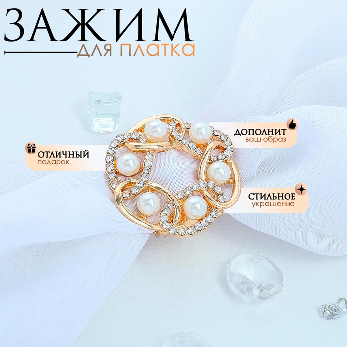 Зажим для платка «Жемчужное соцветие», цвет белый в золоте