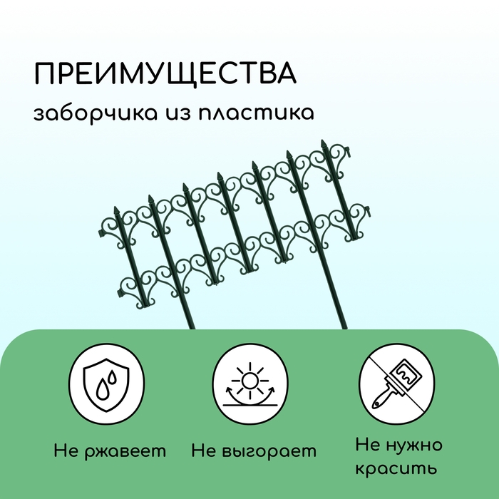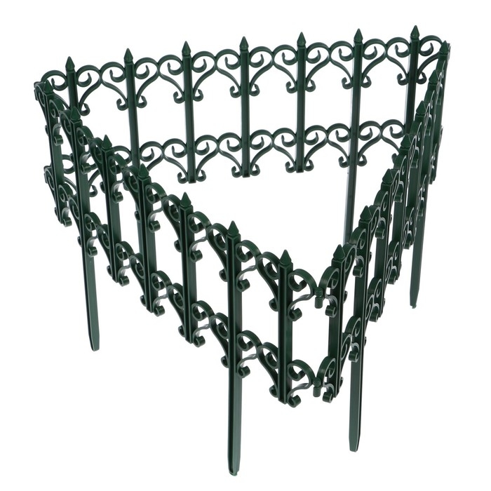 Ограждение декоративное, 25 × 180 см, 5 секций, пластик, зелёное, «Классика»