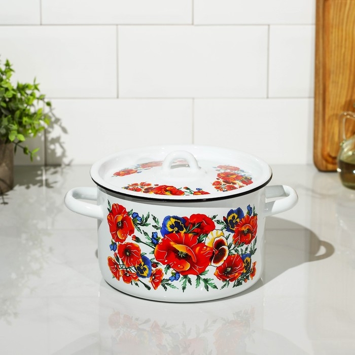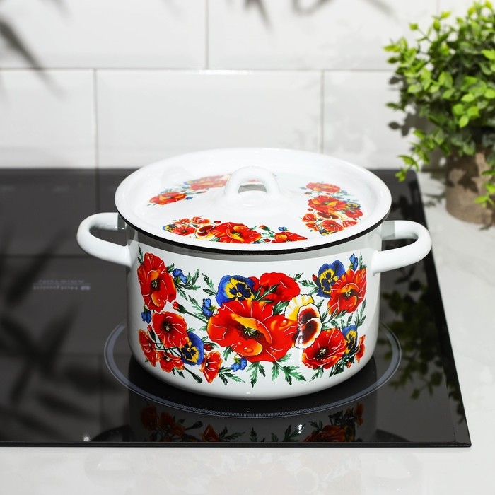 Кастрюля эмалированная «Маки Мечта», 2,9 л, индукция