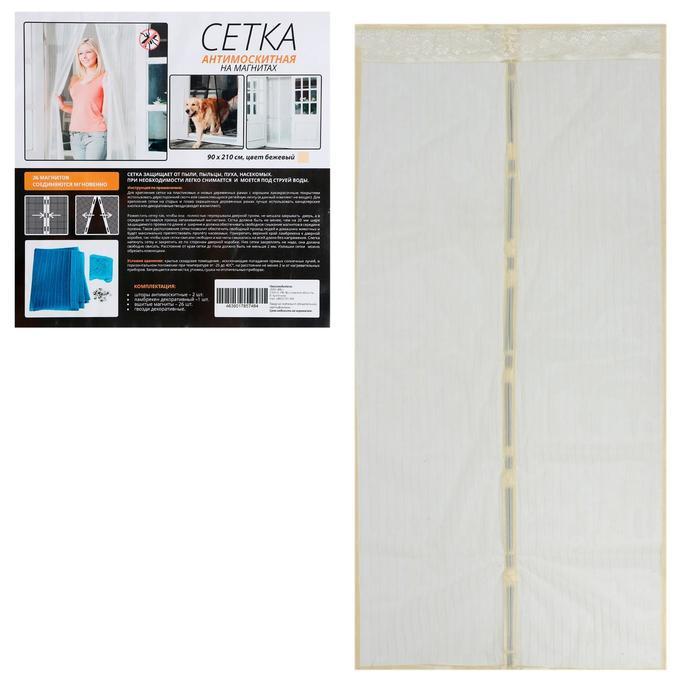 Сетка антимоскитная для дверей, 90 × 210 см, на магнитах, цвет бежевый