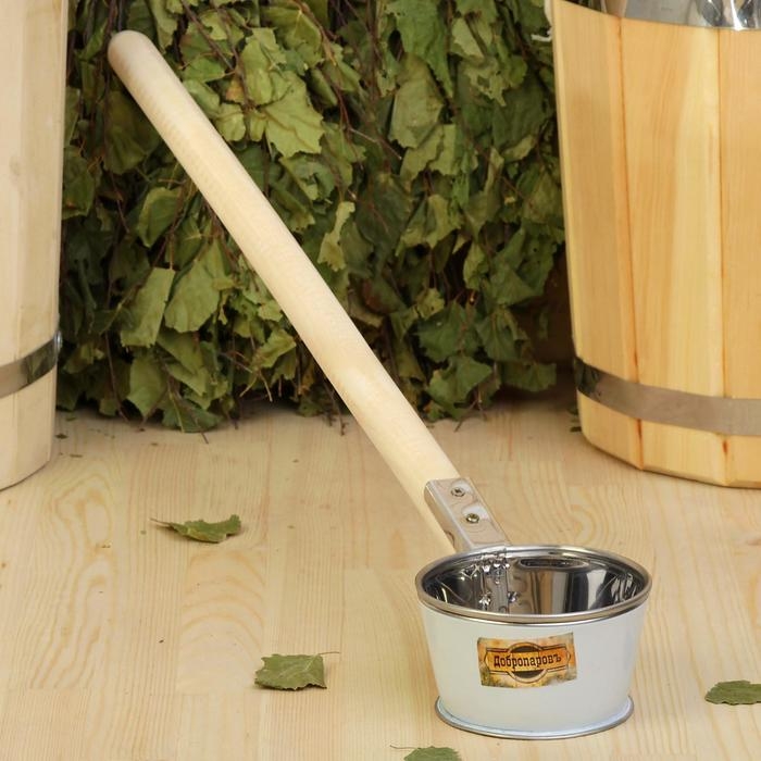 Ковш для бани из нержавеющей стали, 0.4л, 46 см, с деревянной ручкой