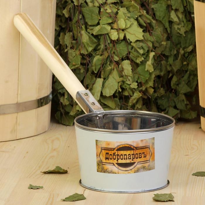 Ковш для бани из нержавеющей стали, 1.2л, 45 см, с деревянной ручкой, "Добропаровъ"